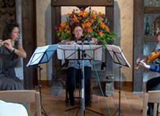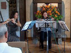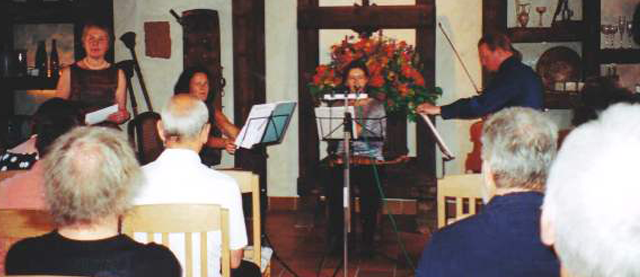 Die drei Musiker, alle Mitglieder der Staatsphilharmonie Rheinland-Pfalz, hatten ein außerordentliches apartes Programm für ihren Auftritt im Wilhelmshof zusammengestellt. Neben den „Klassikern“ Mozart und Beethoven standen selten gespielte Werke der „Neutöner“ Ernst Toch und Gustav Holst auf dem Programm. Christiane Palmen hatte 1986 schon einmal im Wilhelmshof gespielt.