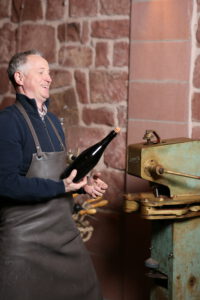 Früher waren Schaumweinflaschen oft schlicht – Korken, Drahtbügel, Etikett. Diese klare, reduzierte Ästhetik gefällt uns. Sie passt zu unserer Arbeitsweise und zu unserem Verständnis von Wein und Sekt.
